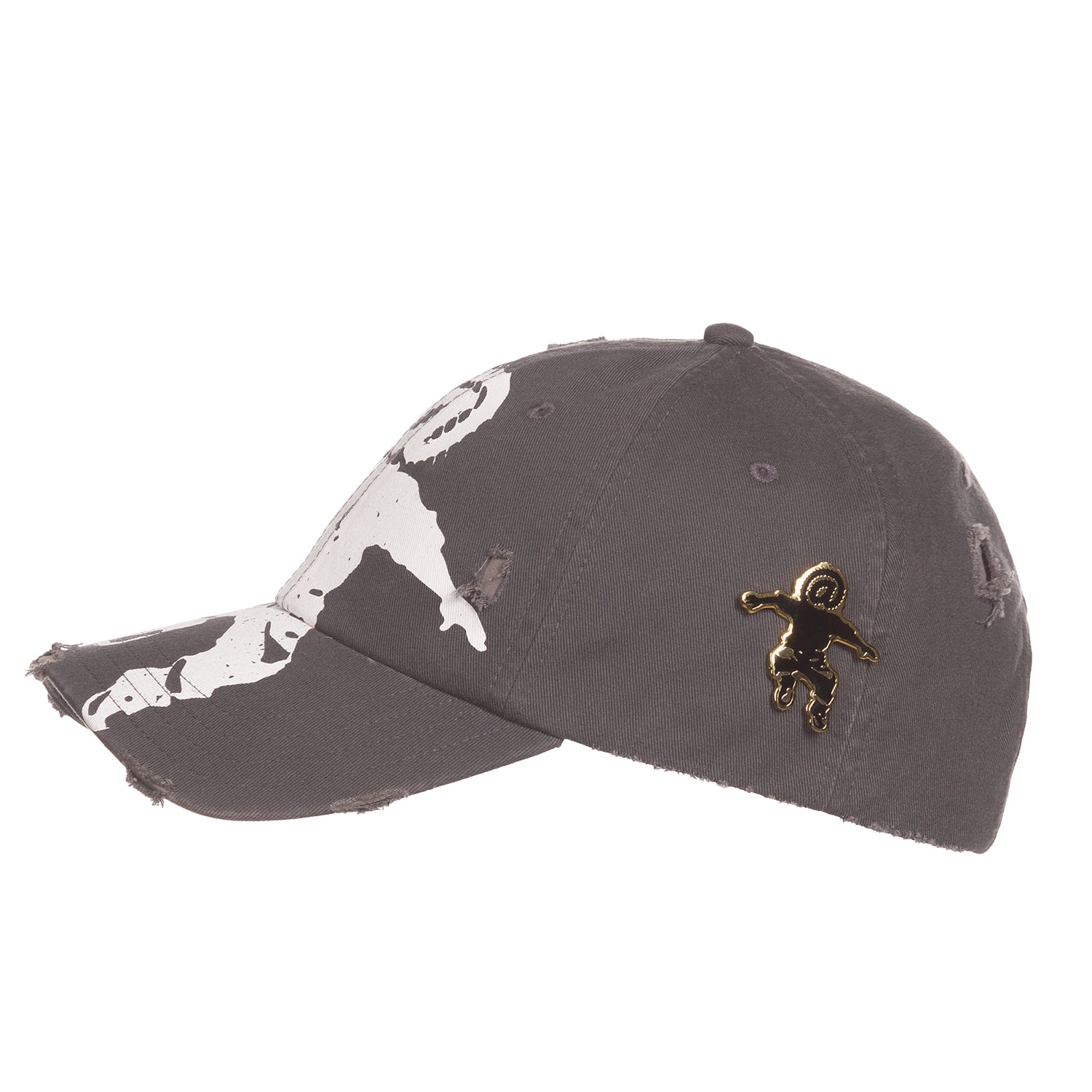 Distressed black cap with a broken-in feel