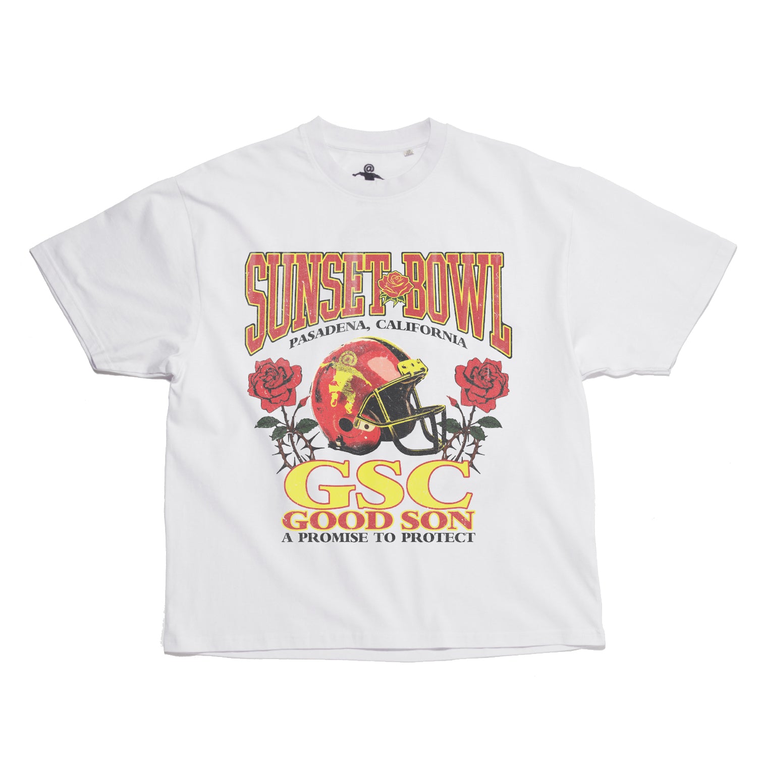 The Sunset Bowl Tee brings West Coast nostalgia to life with a vintage-inspired design celebrating Pasadena’s golden hour. Featuring rose motifs and the GSC – Good Son Club emblem, it’s a salute to legacy, loyalty, and the art of playing your role.