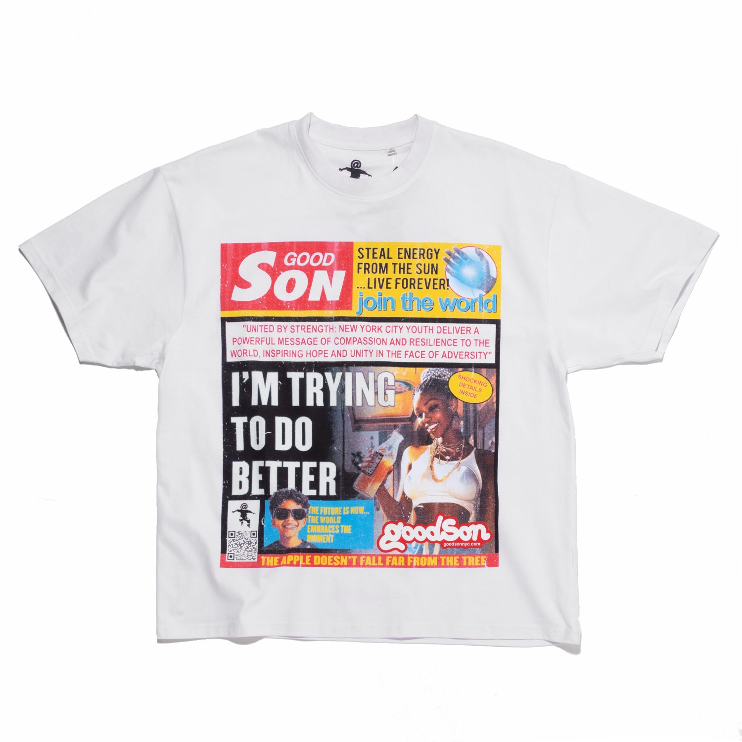 The World News Tee is a box fit, heavyweight piece—channeling the energy of city billboards, community newspapers, and everyday conversations between people just trying to do better.
